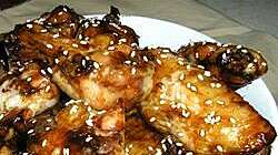 Gooey, sweet wing sauce prepared with common ingredients makes for very tender chicken wings.